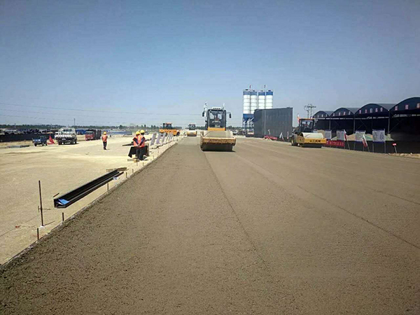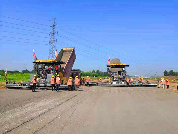 水穩(wěn)攤鋪施工現(xiàn)場(chǎng) -